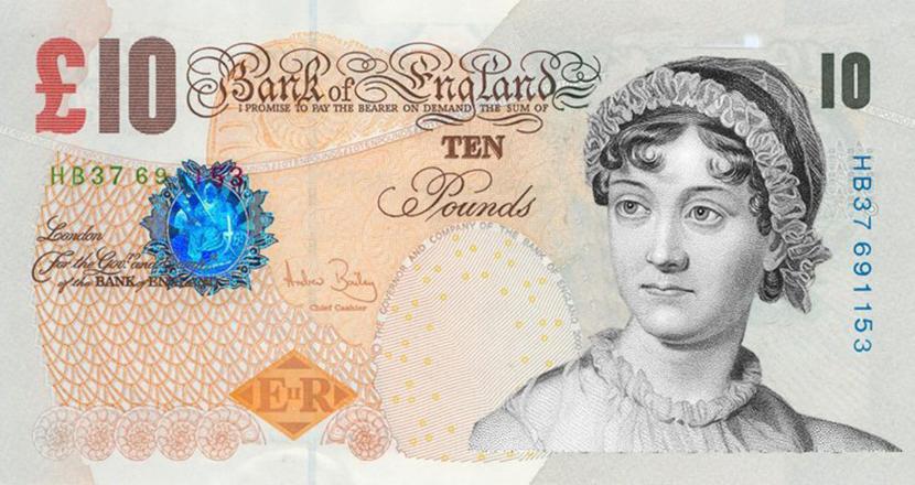 Na banknocie 10-funtowym podobiznę Karola Darwina może zastąpić wizerunek pisarki Jane Austen. Od roku 1970, gdy na brytyjskich banknotach zaczęły pojawiać się postacie historyczne, wyróżnienie to spotkało tylko dwie kobiety: działaczkę społeczną Elizabeth Fry i pielęgniarkę Florence Nightingale. Pozostali to mężczyźni. Podobno zaszczyt, jaki spotkał Jane Austen, ma udobruchać tych, którzy mieli zastrzeżenia, że z banknotów usunięto Elizabeth Fry, reformatorkę więziennictwa, by zastąpić ją Winstonem Churchillem.