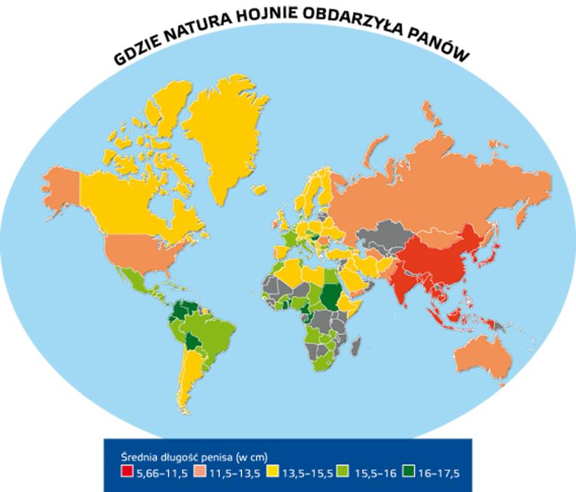 Australijska Narodowa Agencja Zdrowia i Opieki Społecznej pokusiła się o ogólnoświatowe badanie długości męskiego przyrodzenia – wyniki pomiarów pokrywają się z rozpowszechnionymi opiniami na temat hojności natury wobec mieszkańców Czarnego Lądu.