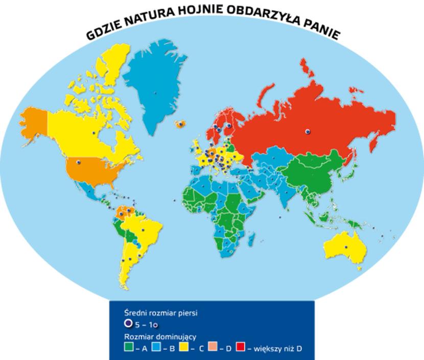 Statystycznie najbujniejsze biusty występują za naszą wschodnią granicą, choć to w Wielkiej Brytanii wyprodukowano stanik w rozmiarze L, podobno ze względu na wielki popyt.