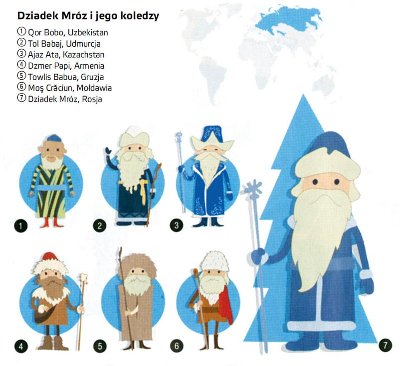 Przodek Dziadka Mroza ze wschodniosłowiańskiej mitologii był personifikacją zimowych chłodów. Brodatym staruszkiem, który w święta rozdaje podarunki i bierze udział w świątecznych zabawach, Dziadek Mróz został dopiero na początku XX w. Po rewolucji październikowej był w Rosji zakazany, wskrzeszono go – ale już bez religijnych konotacji – pod koniec lat 30. Został wmontowany w „nową świecką tradycję” noworoczną na terytorium całego Związku Radzieckiego.