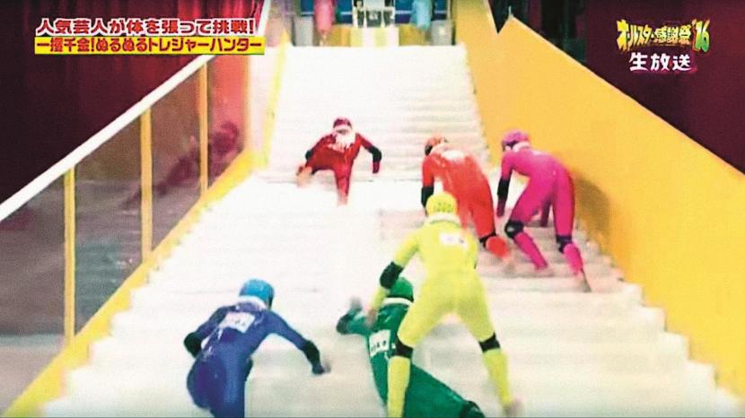 Hitem mediów społecznościowych stał się niedawno filmik zaczerpnięty z japońskiego show: grupa ludzi próbuje się wspiąć po plastikowych schodach wysmarowanych śliską, kleistą substancją. Uczestnicy zabawy z najwyższym wysiłkiem pokonują stopnie, co rusz jeden drugiego podcina, skłębione ciała spadają. Ponownie gramolą się na górę, a gdy już prawie osiągają cel, ponownie ześlizgują się i zaczynają mozolną wspinaczkę na nowo.