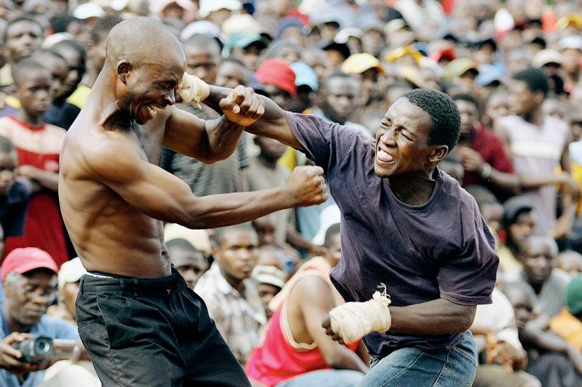 Dzień bez porządnej bijatyki byłby dniem straconym. Thuso Munyai już od rana chodzi po wsi z zadziorną miną, szukając przeciwnika, któremu mógłby spuścić łomot. Sława jego żelaznej pięści nie ułatwia mu zadania. Do tej pory nie znalazł się nikt, kto zechciałby zmierzyć się z tym rosłym osiłkiem. Thuso nie zraża się jednak tak łatwo. Uparcie stara się znaleźć śmiałka gotowego przyjąć jego wyzwanie. Teraz zastąpił drogę wysokiemu żylastemu chłopakowi. Zbliżył się do niego z buńczuczną miną, przygląda mu się natarczywie i wymachuje pięścią przed nosem.