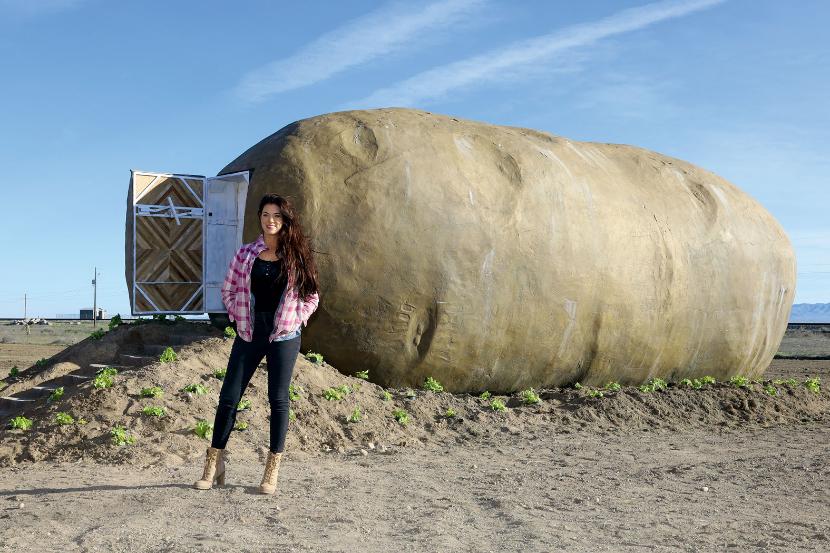 Nocleg w gigantycznym ziemniaku ustawionym w szczerym polu? W stanie Idaho to możliwe. Najpierw po całych Stanach krążyła ciężarówka z sześciotonowym modelem kartofla, promując jego uprawę. Gadżet miał w końcu trafić do muzeum, ale projektantka Kristie Wolfe, która wcześniej na Hawajach zbudowała domek na drzewie, wpadła na pomysł, by w ziemniaku urządzić apartament hotelowy.