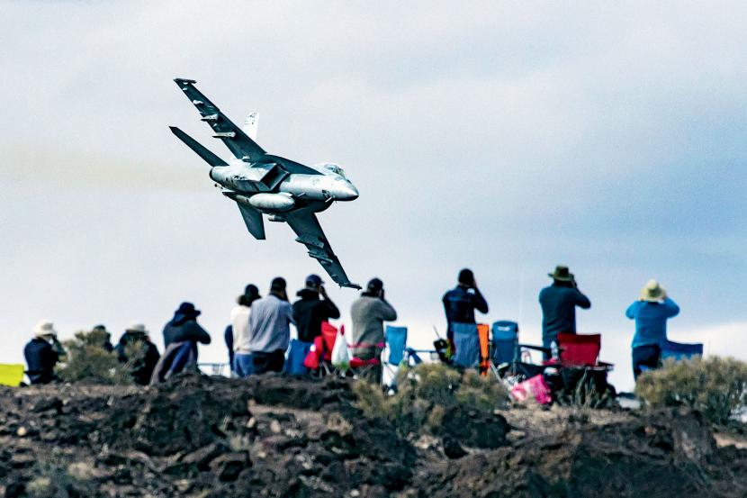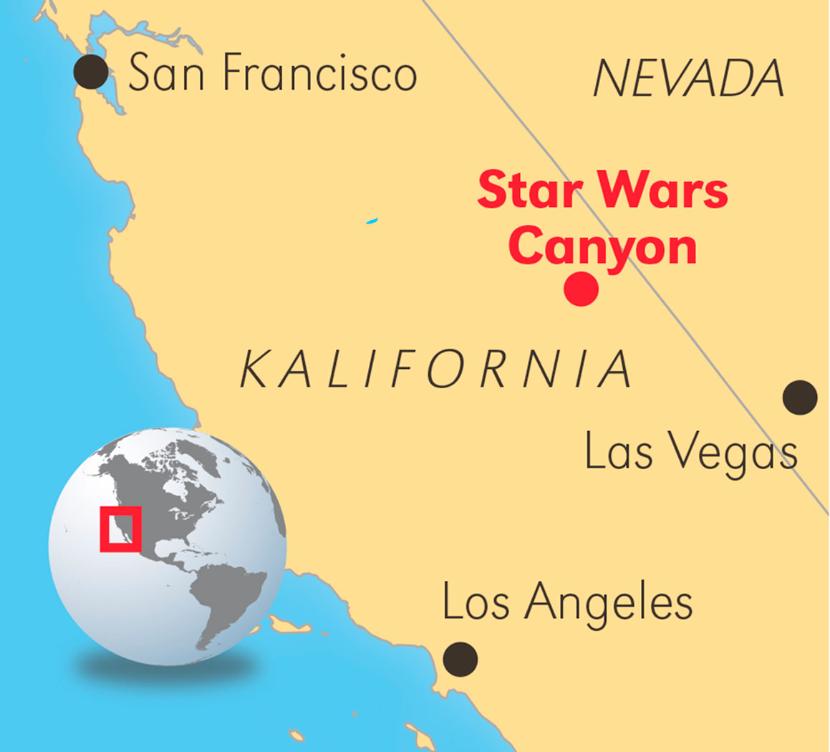 Sunąc nisko nad dnem szerokiej pustynnej doliny, myśliwiec nagle przechylił się na jedno skrzydło i zanurkował w głąb wąskiego wąwozu. Między prastarymi ścianami rozpadliny dźwięk silników maszyny zmienił się w dudnienie, jakby po drewnianym parkiecie poturlała się wielka rozpędzona kamienna kula. Ten hałas, ostro kontrastujący z ciszą pustyni, jest jedną z atrakcji, które przyciągają byłych wojskowych, miłośników lotnictwa i fotografów, zbierających się nad Kanionem Gwiezdnych Wojen na zachodnim skraju Parku Narodowego Doliny Śmierci w amerykańskim stanie Nevada.