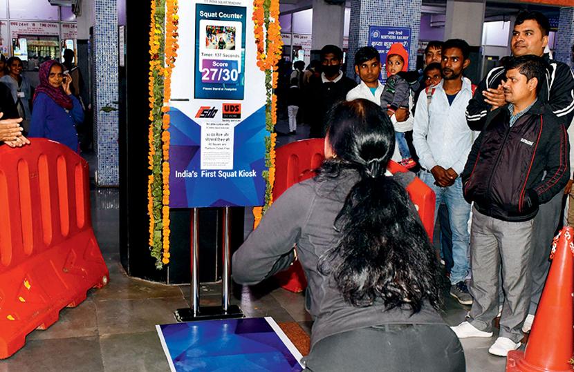 Osoby, które zrobią trzydzieści przysiadów w ciągu 180 sekund, wchodzą za darmo na peron. Na jednym z dworców w New Delhi zainstalowano automat, który wydaje bezpłatną peronówkę, jeśli podróżny stanie przed nim i wykona ćwiczenia. Żadna inna stacja kolejowa w kraju, a zapewne i poza nim, nie może się pochwalić tego rodzaju urządzeniem. Akcja ta jest elementem kampanii na rzecz „zdrowych Indii” zainaugurowanej przez premiera Narendrę Modiego. „Niech sprawność fizyczna idzie w parze z oszczędzaniem” – dorzucił od siebie minister kolejnictwa, który zamieścił na Twitterze filmik przedstawiający młodego człowieka robiącego przysiady przed automatem.