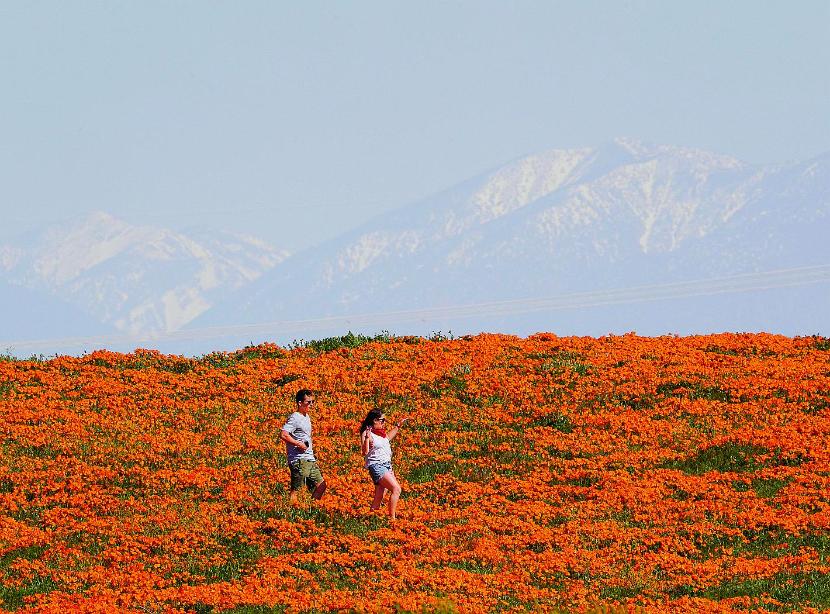 Z powodu pandemii koronawirusa odwołano wiele występów, ale wiosenny show organizowany przez matkę naturę w kalifornijskiej Antelope Valley trwa w najlepsze. O tej porze roku zbocza łagodnych wzgórz zamieniają się tu w ogniste kobierce złożone z tysięcy kwitnących na pomarańczowo maków. W poprzednich latach zapierający dech w piersiach widok przyciągał tłumy turystów, ale ponieważ w okresie pandemii przeżyć estetycznych nie uważa się za sprawę pierwszej potrzeby, rezerwat Antelope Valley w pobliżu miasta Lancaster (na północ od Los Angeles) zamknięto dla zwiedzających.