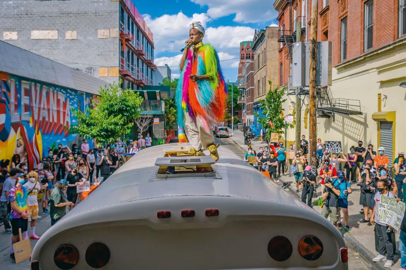 Paperboy wchodzi do swojej Love Gallery na Brooklynie jak na scenę.
