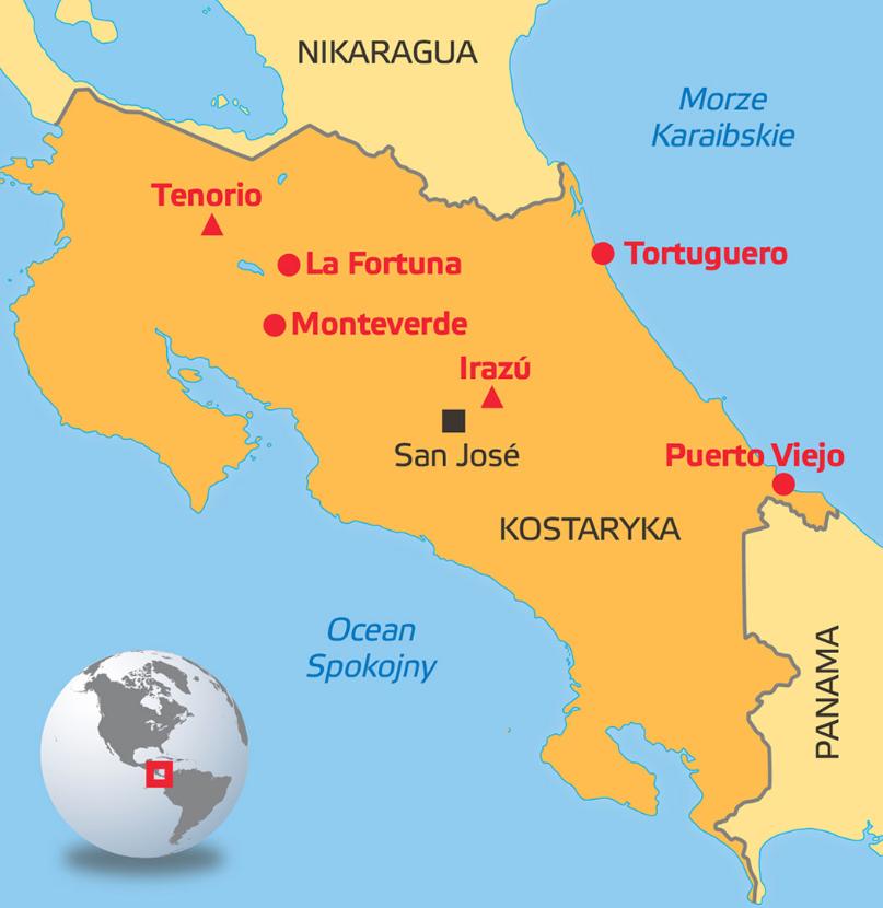 San José, stolica Kostaryki, to ciekawe, postkolonialne miasto, w którym znajdziemy kilka interesujących kościołów i XIX-wiecznych rezydencji. Z premedytacją jednak od razu zeń uciekamy, bo prawdziwą atrakcją tego niewielkiego karaibskiego kraju jest jego niesamowita przyroda. W Kostaryce czeka nas więc trekking przez dżunglę, odwiedziny w parkach narodowych i rezerwatach zwierząt. Przede wszystkim zaś zakosztujemy tu „pura vida”, czyli czystego życia. Dla mieszkańców to właśnie styl życia – beztroskiego, pełnego radości z tego, co tu i teraz.
