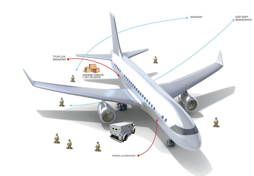 Paryskie lotnisko Roissy, 19 września br., godzina jedenasta. Opancerzony furgon firmy Brink’s zatrzymuje się w pobliżu kokpitu samolotu odlatującego do Zurychu. Wysiadają z niego dwaj konwojenci. Wykładają dziewięć niedużych drewnianych skrzynek na taśmę, która transportuje je do tylnego luku bagażowego, przeznaczonego dla ładunków wartościowych. Potem konwojenci wracają do swojego pojazdu. Odtąd muszą bacznie obserwować tylny luk bagażowy, dopóki samolot nie wystartuje.