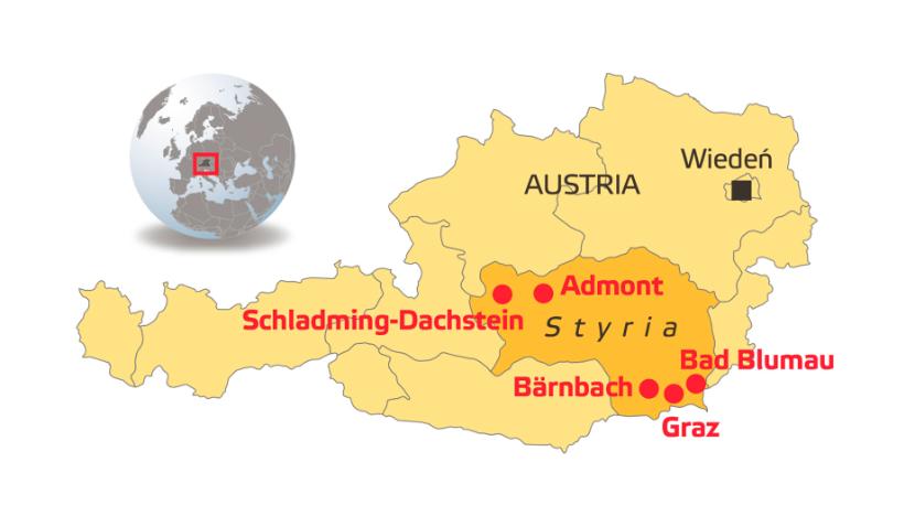 Styria nazywana jest zielonym sercem Austrii – pochodzi stąd np. trzy czwarte uprawianych w kraju jabłek. Jednocześnie to słynny region narciarski, dokąd przez blisko połowę roku pielgrzymują miłośnicy białego szaleństwa. Od wieków te ziemie przechodziły z rąk do rąk: pierwotnie mieszkające tu plemiona zhołdowali Rzymianie, których z kolei wyrzucili stąd Germanie, nieustannie bijąc się także z nacierającymi od północy i wschodu Słowianami. Mniej więcej w X wieku powstało niezależne księstwo Styrii, które po trzystu latach weszło w skład imperium Habsburgów i od tamtej pory zawsze należało do Austrii.