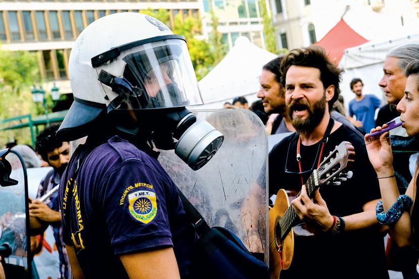 Jak co wieczór zebrali się na schodach prowadzących na szczyt wzgórza Lofos Strefi. Tam w górze widać bujną zieleń – to ich park, którego zamierzają bronić. W tym celu urządzili hałaśliwą pikietę. Rozwinęli transparent: „Metro Stop!”.