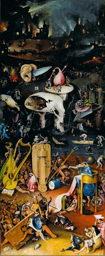 Specjaliści od inżynierii biomedycznej zauważyli ostatnio, że kiedy zwiedzający madryckie muzeum Prado podchodzą do tryptyku Boscha „Ogród rozkoszy ziemskich”, pobieżnie rzucają okiem na raj, po czym zerkają na piekło. Lewy panel dzieła przedstawia beztroski, bukoliczny Eden. Goście muzeum poświęcają mu średnio zaledwie 16 sekund. Część środkowa pokazująca polimorficzną orgię zwykle zatrzymuje widza na 26 sekund. Gdy jednak dotrze on do ostatniego skrzydła, przez 33 sekundy studiuje perwersyjne inferno, w którym ludzie kopulują z ptakami, świnia ma na głowie zakonny welon, a dudy przypominają zwiotczały penis i napuchnięty worek mosznowy.