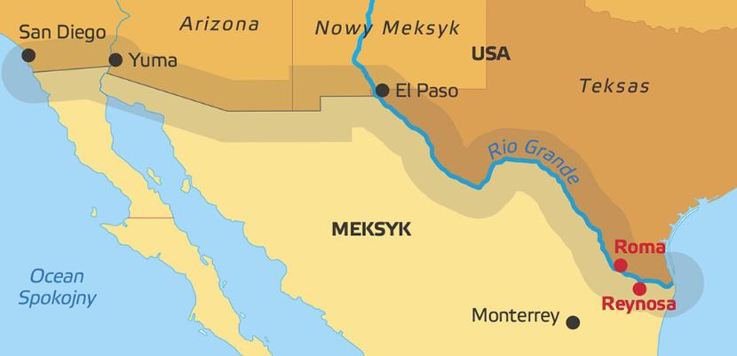 Gdy brzegi Rio Grande spowił mrok, trzcinowe zarośla ciągnące się kilka kilometrów na zachód od teksańskiego miasteczka Roma rozjarzyły się bladym migotaniem telefonów komórkowych. Słychać było, jak przemytnicy pompują gumowe pontony. Takie sceny można obserwować co noc w dolinie Rio Grande, epicentrum poprzednich boomów migracyjnych. Liczba osób nielegalnie przekraczających granicę Meksyku i Stanów Zjednoczonych zbliża się do rekordowego poziomu w skali ostatniego dwudziestolecia. Od października ub.