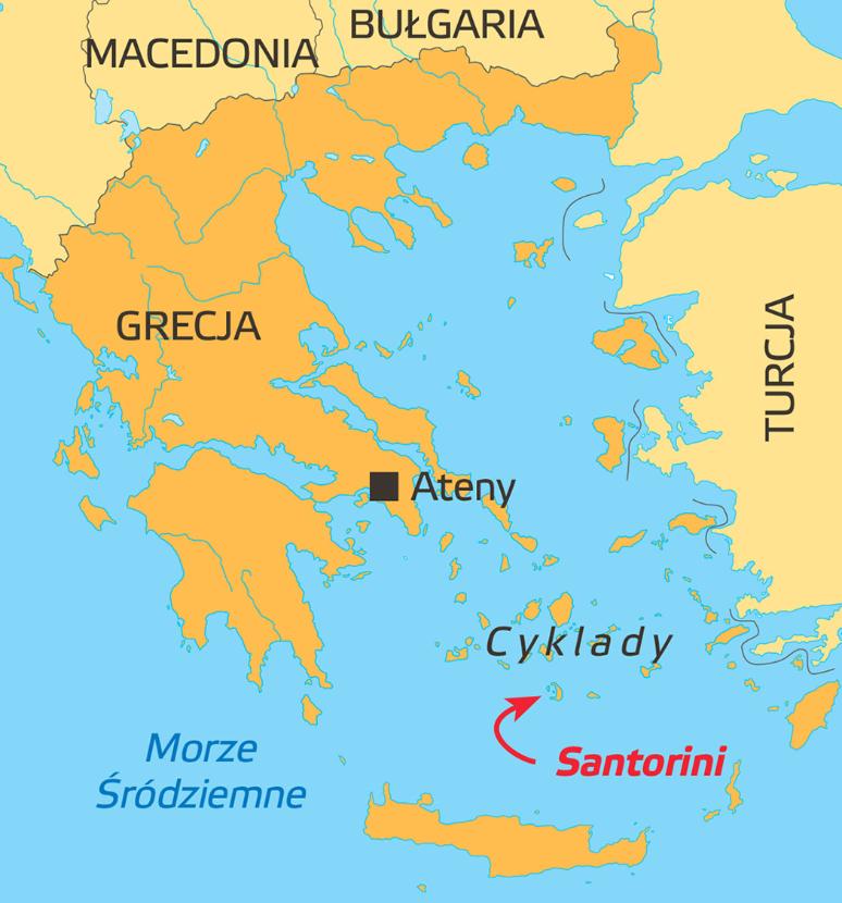 Widoki jak z pocztówki, białe domki, niebieskie dachy, lśniące morze, a na nim rozrzucone jak klejnoty maleńkie wysepki. Pośród nich Santorini, prawdziwa perła Cyklad.