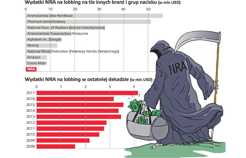 Każda masakra z użyciem broni palnej w USA, również ta, do jakiej doszło ostatnio na Florydzie, gdzie 19-latek zabił w szkole 17 osób, wywołuje żądania ograniczenia dostępu do broni. Słuszny gniew zrozpaczonych rodziców i wysiłki aktywistów napotykają jednak nieprzejednany opór wpływowego lobby miłośników broni zrzeszonych w Narodowym Stowarzyszeniu Strzeleckim (NRA).